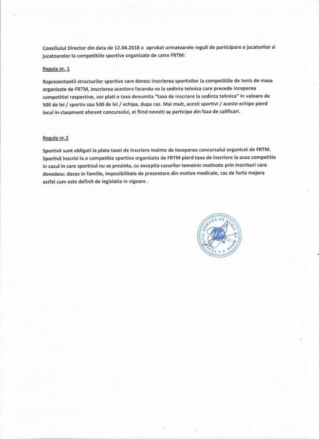 Precizari la regulamentul de participare in competitii, 12.04.2018